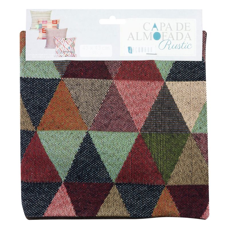 A Capa de Almofada Triângulos Jacquard é perfeita para adicionar um toque de modernidade e estilo em sua casa. Com dimensões de 43cm x 43cm, ela se adapta perfeitamente a almofadas de tamanho padrão, tornando-a uma opção versátil e prática para atualizar a decoração da sua casa. Esta capa apresenta um design geométrico de triângulos. As linhas nítidas e a combinação de cores contemporâneas conferem um visual dinâmico e energético, ideal para ambientes como salas de estar, quartos, escritórios ou qualquer espaço que beneficie de um elemento de design audacioso. A capa é confeccionada em material de alta qualidade, resistente ao uso cotidiano e fácil de manter. Seu sistema de fechamento é prático e discreto, facilitando a inserção e remoção da almofada para lavagem ou simplesmente para mudar a decoração conforme desejado. Combine-a com almofadas de cores sólidas ou outros padrões para um look eclético e personalizado.