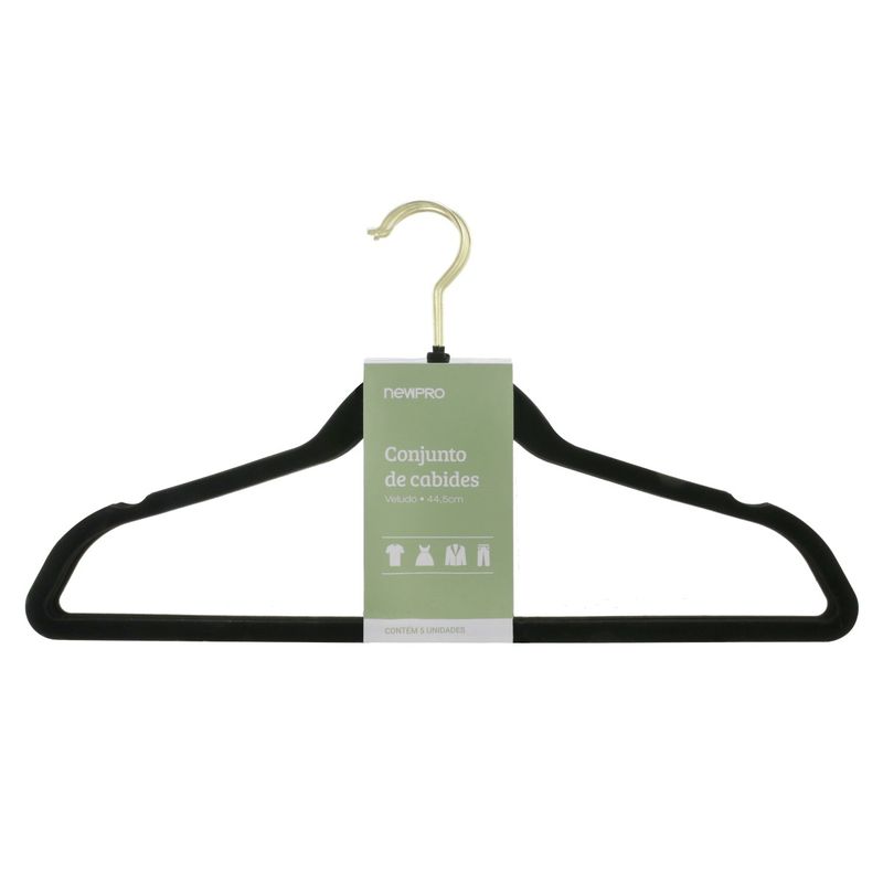 O Conjunto de Cabide de Veludo Preto e Dourado Newpro 5 Peças une sofisticação e praticidade, sendo a escolha ideal para quem busca organização e elegância no guarda-roupa. Com revestimento em veludo preto de alta qualidade, esses cabides proporcionam um toque luxuoso enquanto evitam que suas roupas escorreguem, preservando suas peças e mantendo-as organizadas, sem marcas. O detalhe dourado agrega um toque de refinamento, tornando-os perfeitos para quem aprecia qualidade e estilo.