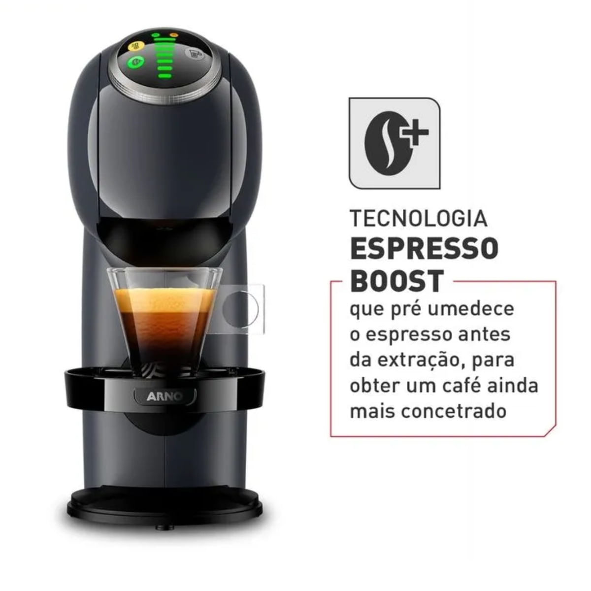 Cafeteira Nescafé Dolce Gusto Genio Plus Preta Arno 220V R$ 799,90 à vistaou 10x de R$ 79,99 Confira a disponibilidadeem uma loja físicaQuantidade+-Adicionar