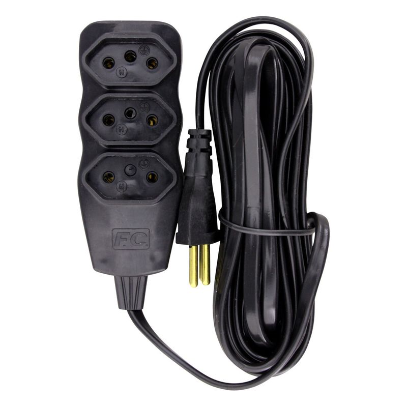 Extensão Tripolar 3 Tomadas Preta F.C. New 5m 10A