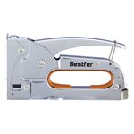 O Grampeador Profissional Bestfer é manual, feito em aço com pega emborrachada para maior conforto na hora de usar, é ideal para tapeceiros e artesanato. Possui trava de segurança.
