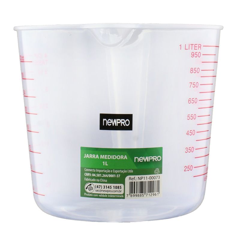 A Jarra Medidora Plástica Newpro 1l proporciona precisão ao executar receitas e realizar preparos diversos.