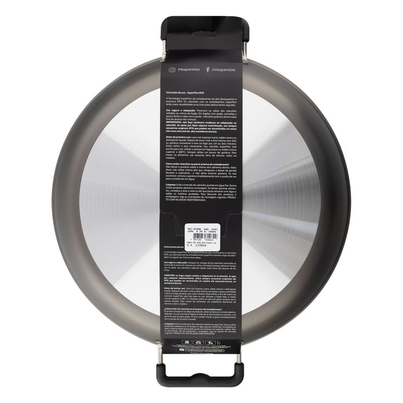 A Paella é um prato festivo que os espanhóis saboreiam em datas marcantes, mas quem disse que também não se pode preparar uma deliciosa paella? Você precisará do auxílio da Paellera Preta de Alumínio sem Tampa Antiaderente 4,6l MTA Supra. Produzida em alumínio com revestimento interno e externo antiaderente Superflon Ultra MTA. Alças em baquelite e estruturas alongadas que garantem maior firmeza durante o manuseio. Um item especial e perfeito para preparar e servir a sua receita de maneira exclusiva, proporciona um cozimento rápido e uniforme dos alimentos, além de evitar que eles grudem em sua superfície.