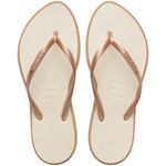 A Sandália Slim Point Bege Havaianas é a escolha perfeita para quem busca unir tendência, conforto e versatilidade em um único modelo. Com bico levemente pontudo, ela reinventa o clássico chinelo Slim e adiciona um toque fashion ao visual, seguindo as principais tendências da moda. O design moderno traz tiras finas com logo metálico, combinadas a tons suaves na sola e bordas laterais contrastantes, criando um efeito elegante e atual. Leve, prática e confortável, é ideal para acompanhar looks de verão na praia, em passeios ou no dia a dia, sempre com a qualidade e o conforto inconfundíveis da Havaianas.