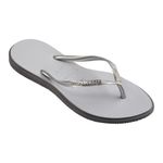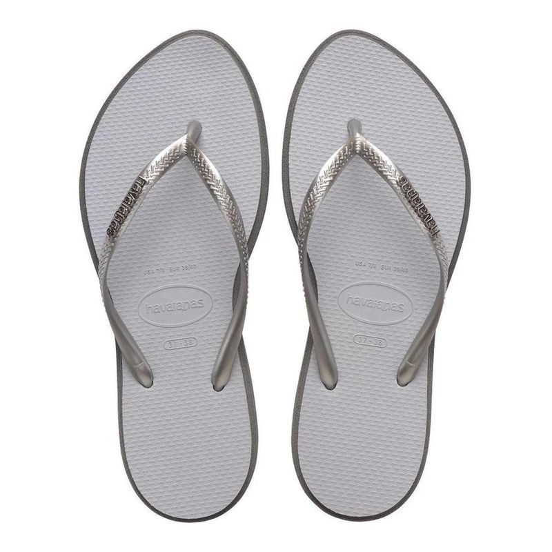 A Sandália Slim Point Cinza Havaianas traduz o equilíbrio perfeito entre minimalismo, conforto e um toque sofisticado de brilho. Com design elegante, ela se destaca pelas tiras metálicas prateadas com efeito trançado, que elevam o visual básico a um estilo moderno e refinado. A palmilha cinza com textura anatômica garante conforto no uso diário, enquanto o solado leve, durável e com ótima aderência proporciona segurança a cada passo. Ideal para compor looks casuais elegantes, momentos de lazer ou para presentear quem valoriza praticidade com estilo.
