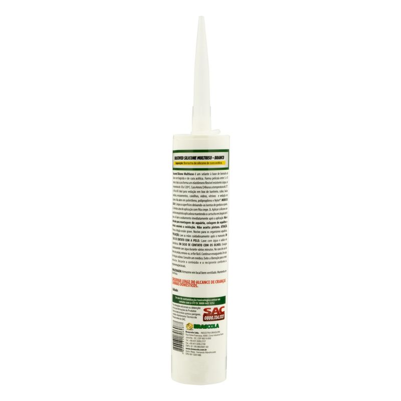 O Silicone Acético Branco Brascoved Tubo 280g é um selante à base de borracha de silicone com fungicida e de cura acética. Aplicável em superfícies úmidas. Forma película entre 5 a 10 minutos. Após a cura forma um elastômero flexível resistente à água, sol e temperatura de -30 a 120°C.