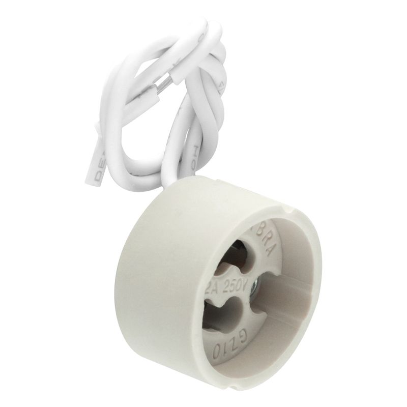 Soquete Branco GZ10 da Taschibra 250V feito em porcelana com fio siliconado. Para redes de tensão de até 250V com limite de corrente de até 2A. A Taschibra é uma empresa brasileira especializada em produtos para iluminação e uma das maiores indústrias de iluminação da América Latina, atuando também como exportadora para vários países. A empresa tem buscado sempre novos mercados e novidades, o que a coloca em posição de destaque, trazendo sempre o que há de melhor e mais moderno no segmento, fabricando produtos de alta qualidade e design inovador.