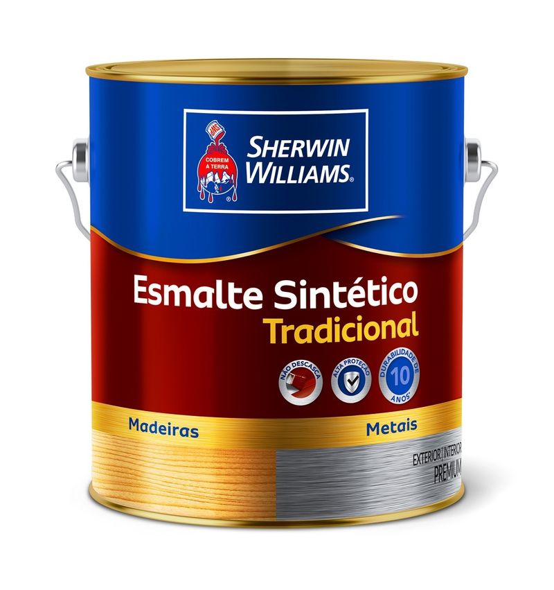 A Tinta Esmalte Sintético Tradicional Branca Acetinada Sherwin Williams Premium Lata 3,6l proporciona alta cobertura e um ótimo acabamento para superfícies externas e internas de madeiras e metais, além de não descascar. Possui máxima proteção e durabilidade de 10 anos*.