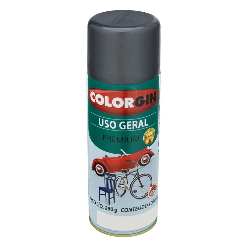 A Tinta Spray Uso Geral Colorgin 400ml Grafite Roda é um produto com alta durabilidade e secagem rápida, possuindo um rendimento de até 2,3m² proporciona um ótimo acabamento e cobertura em diversos tipos de materiais, Além de sua alta resistência a intempéries o que permite sua aplicação tanto em ambientes internos quanto externos.